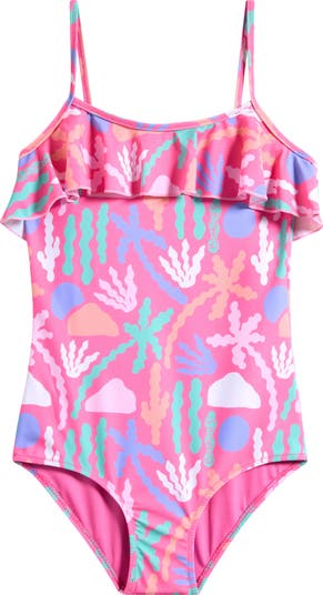 Boardies Kids' Palms Springs Ruffle One-Piece Swimsuit, Main, color, Pink
