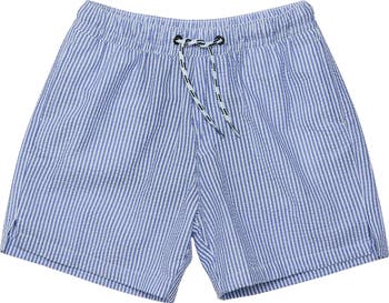Nautical graphics pattern these surf-ready board shorts with an elastic waist for kid-approved comfort.
