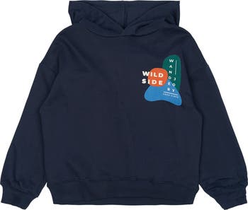 Your junior adventurer will spread nothing but good vibes in the comfort of this oversized hoodie cut from breathable organic cotton.