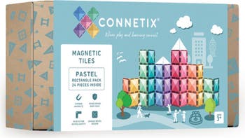 Kids can play with STEAM concepts as they build creative designs with this set of magnetic tiles that are larger than standard CONNETIX squares. The rectangular tile size has multiple connection points and offers extra stability to create bigger, more complex designs.