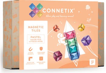 Kids can challenge their inner engineers to build even bigger designs with this set of magnetic tiles in standard and large sizes. The larger tile size has multiple connection points and offers extra stability, while the assortment of colors and sizes maximizes shape and pattern play.