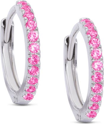 Blushing cubic zirconia lines these petite earrings your kiddo is sure to take a shine to.