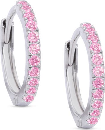 Blushing cubic zirconia lines these petite earrings your kiddo is sure to take a shine to.
