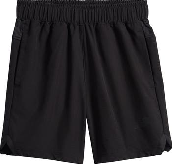 Pull-on shorts with handy side pockets are made of stretchy performance fabric to keep your kiddo cool and comfy while active.