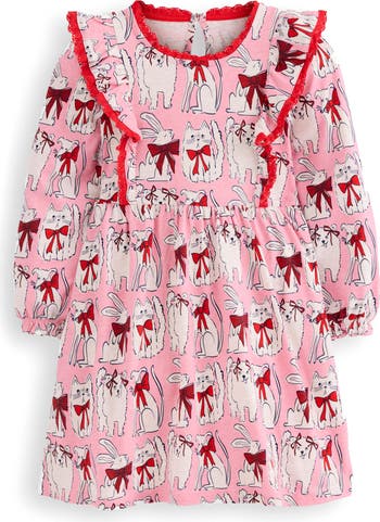 Be-ribboned pets pose on a relaxed and ruffly cotton jersey dress that's fashioned like a pinafore and accented with pretty crocheted trim.