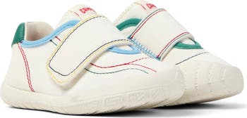 An ergonomic design mimics a barefoot feel in this pint-sized sneaker done in the label's signature complimentary but not identical design.