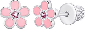 Colorful crystals add extra sparkle to whimsical flower earrings that are crafted from hypoallergenic materials and are sure to delight any child.