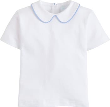 - Your favorite short sleeve layering piece, our Piped Peter Pan Shirt is made from the softest white cotton and features red piping around the collar. Try styling this one under any of our Essential Shortalls or john Johns for the perfect seasonal outfit.