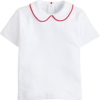 - Your favorite short sleeve layering piece, our Piped Peter Pan Shirt is made from the softest white cotton and features red piping around the collar. Try styling this one under any of our Essential Shortalls or john Johns for the perfect seasonal outfit.