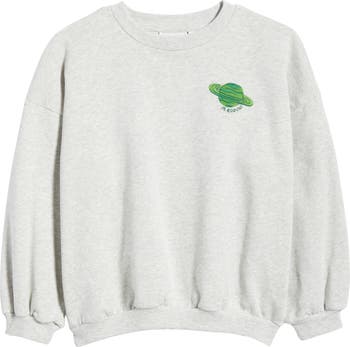 Organic-cotton French terry brings out-of-this-world comfort to a sweatshirt sporting planetary embroidery and a down-to-earth size that's perfect for kids. Easy to layer, it makes a great choice for staying warm on any adventure.