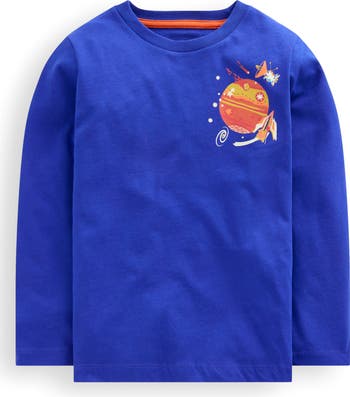 A volcanic planet is explored by a landing vehicle on a long-sleeve cotton T-shirt that your aspiring astronaut will love wearing while on earth.