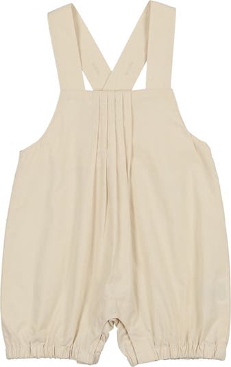Stitched-down pleats add charming detail to these cotton-blend overalls made in a neutral hue to go with everything.