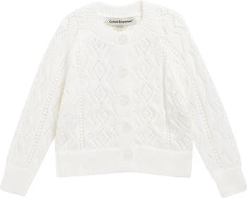 Airy pointelle stitching creates a geometric design in a lightweight cardigan your child will wear multiple seasons of the year.