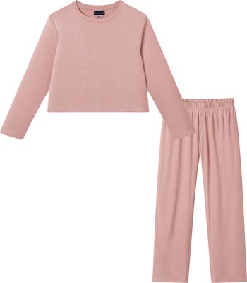 A darling heart design sweetens the dainty pointelle knit of stretch-added pajamas that will keep your child nice and comfy on chilly nights.