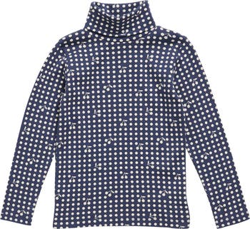 Bonpoint Kids' Polka Dot Cherry Print Cotton Turtleneck Top, Main, color, Po Marine 770