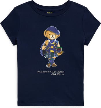 Sporting her preppy best, Ralph Lauren's iconic polo bear mascot joins your kiddo for adventures in this breathable cotton T-shirt that keeps them comfy from the classroom to the couch.
