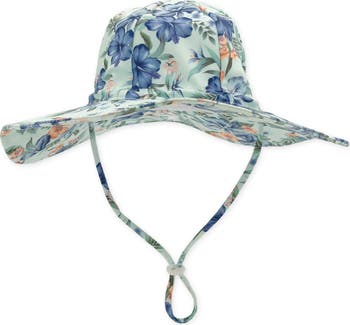 UV-blocking fabric shields little heads in a wide-brim swim hat that's just right for splash time in the kiddie pool.