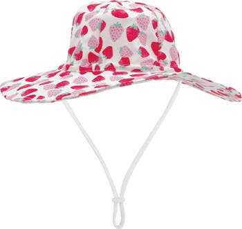 UV-blocking fabric shields little heads in a wide-brim swim hat that's just right for splash time in the kiddie pool.