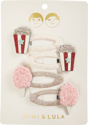 They'll love adding their favorite treats to their updo with these charming hair clips featuring popcorn and cotton candy.