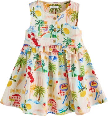 A vibrant postcard print brings major vacay vibes to this breezy cotton sundress that will solidify their status as a junior trendsetter.