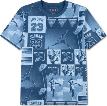 A collage of iconic Jordan imagery brands this kid-size T-shirt ready to make ordinary days legendary.