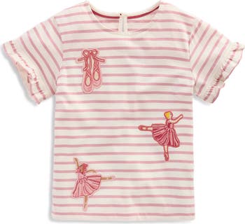 Give your tiny dancer a reason to twirl with this striped cotton T-shirt, where sweet ruffles and beautifully stitched ballerinas set the stage for pirouettes and play.