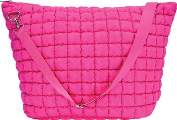Your little traveler will love to pack up a quilted bag offered in an electric hue and swung from an adjustable strap.
