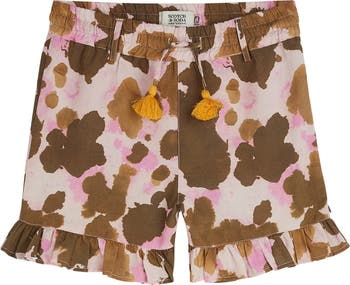 A captivating print cascades over easygoing shorts made from a blend of cotton and linen to keep your child comfortable on hot days.