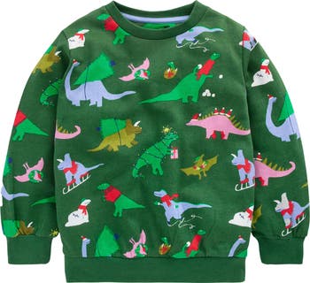 A festive dinos standout on this cozy crewneck sweatshirt made from soft cotton yarn that is kid approved.