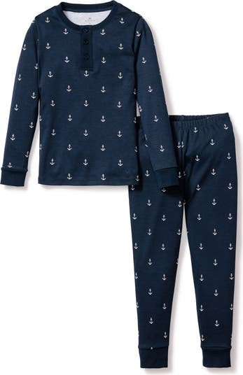 Supersoft pima cotton spells sweet dreams for your little one in these long-sleeve henley pajamas with a nautical pattern anchoring the fitted cut.