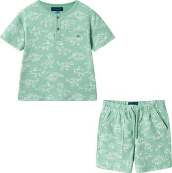 A softly slubbed cotton blend brings all-activity comfort to a henley T-shirt and matching shorts that keep every day sunny for your little one. They work great together and pair separately with other funtime favorites to let you mix and match for playtime and downtime.