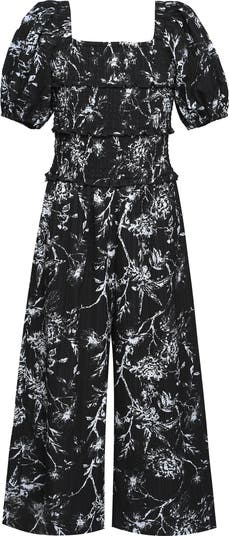 Puff sleeves and wide legs turn up the volume and style of this smocked jumpsuit that will have your junior trendsetter dressed to impress in one easy step.