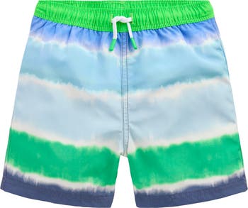 A vibrant tie-dye pattern brings playful flair to these lightweight swim trunks topped by a drawstring waist to give your beachgoer a comfy fit.