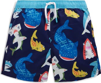 A host of sea creatures brings playful flair to these lightweight swim trunks topped by a drawstring waist to give your beachgoer a comfy fit.
