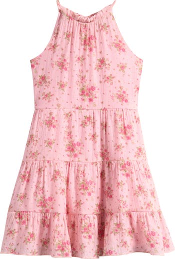 Give them their flowers in this charming printed dress finished with flouncy tiered ruffles.