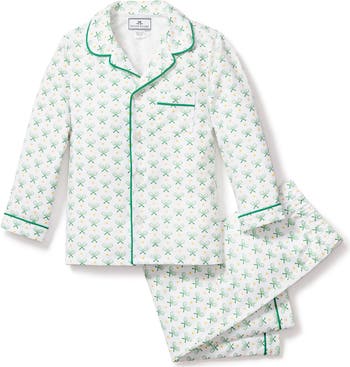 Green piping trims the collared top and matching pants of classic pajamas cut in a relaxed fit from brushed fabric for your little one's maximum comfort.