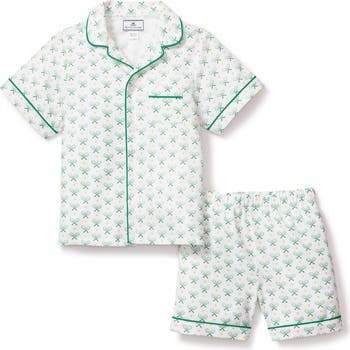 Green piping trims the collared top and matching shorts of classic pajamas cut in a relaxed fit from brushed fabric for your litlte one's maximum comfort.