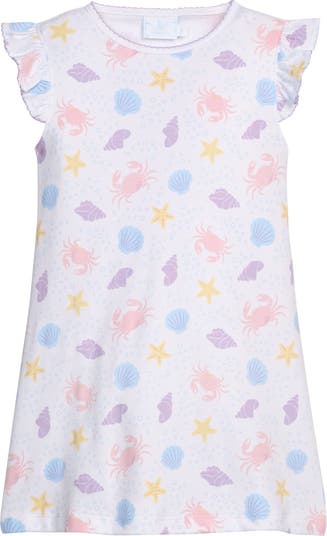 Made from super soft pima cotton, this knit dress features a classic print and picot trim at the neck and flutter sleeves.