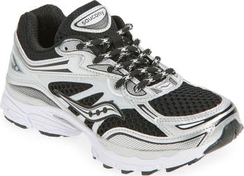 A forward-looking 2010 icon keeps setting the pace as a kid-size sneaker sporting open-weave mesh caged under layers of rubberized architecture, polished leather and soft suede. The kinetic shapes extend to the split, sculpted sole embedded with Grid cushioning that moves dynamically to keep every step stabilized and comfortable.