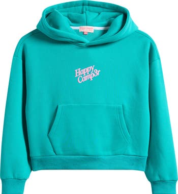 A puffed logo at the chest brings ultracool branding to a slouchy and soft kid-sized hoodie fronted with a handy kangaroo pocket.