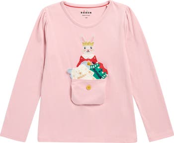 Your child will have endless fun choosing a festive outfit for the bunny at the front of this long-sleeve shirt. The roomy pocket includes a two extra outfits that can be attached via the front button.