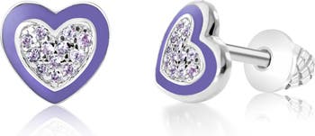 Colorful crystals add extra sparkle to adorable heart earrings that are crafted from hypoallergenic materials and are sure to delight any child.