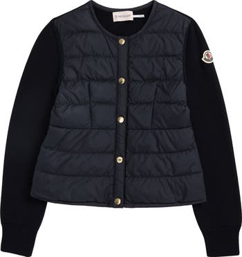 Whether worn on its own or as a layer under outerwear, this hybrid cardigan offers lightweight warmth with a down-quilted core paired with a cozy cotton knit.