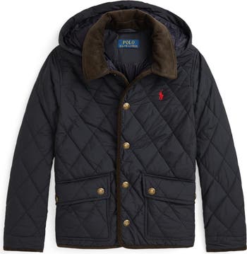 Your young one will look the part of a country squire walking the dogs in this matte barn jacket featuring diamond quilting and neat corduroy accents.