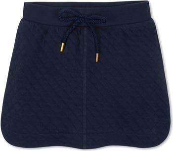 Our sporty quilted skort in a soft organic cotton blend pairs comfort with picture-perfect style. Features an easy pull-on elastic waist, a faux drawcord, and a soft jersey inner short to ensure this look is ready for playtime. Perfect for uniforms and pairs nicely with our collection of organic cotton sweaters and tops.