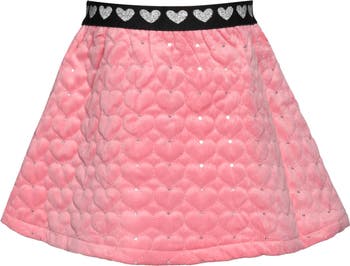 Keep her warm and stylish this season with this ultra-cozy quilted skirt detailed with rhinestone-embellished hearts.