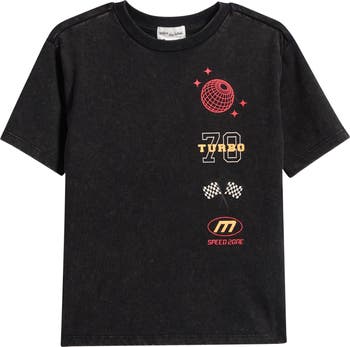Your little speedster can race around the playground in this all-cotton graphic T-shirt detailed with track-inspired graphics.