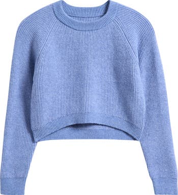 Roomy raglan sleeves frame a boxy pastel sweater made from yarn kissed with wool and knit in a classic stocking stitch.