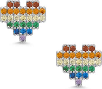 Dainty heart stud earrings inspired by retro 8-bit graphics are prong-set with rainbow-hued cubic zirconias for a fanciful pop of colorful sparkle your kid will love.