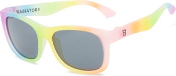 Flexible rubber frames and shatter-resistant lenses stand up to all kinds of activities in these kid-size sunglasses offering full-coverage UV protection.
